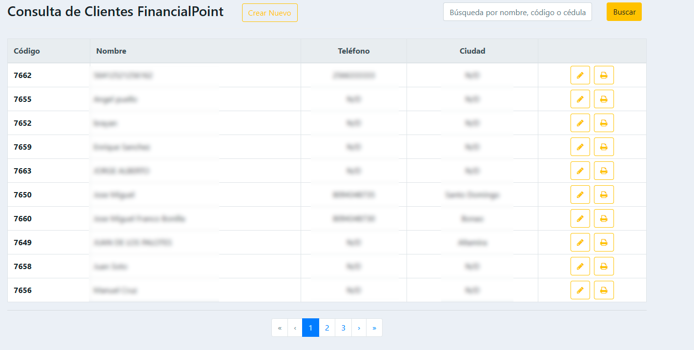 Para buscar su listado de clientes, solo tiene que dar clic a la opción de buscar.