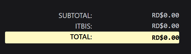 Valores: Introduzca la Cantidad y el Precio unitario. El sistema calculará automáticamente el ITBIS (impuesto) y el Importe total de la línea.