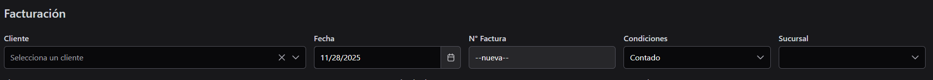 Condiciones y Fecha: Defina si la venta es al "Contado" o a "Crédito" en el campo de Condiciones. Verifique que la Fecha sea correcta.