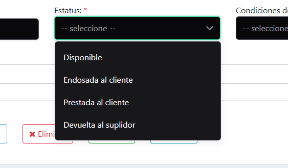 Devuelta al suplidor: En caso de devoluciones de unidades.