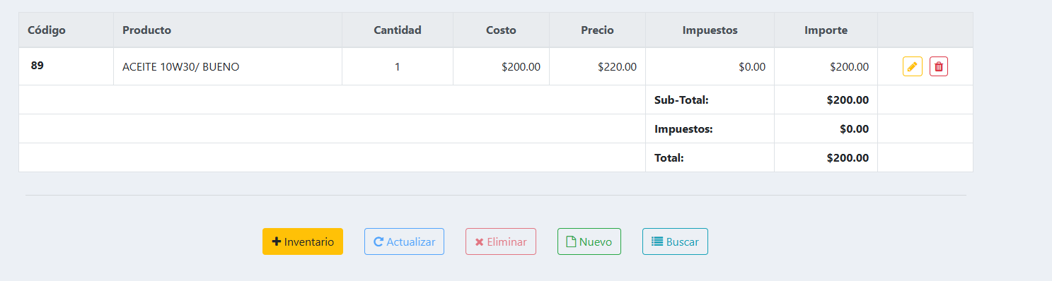 Antes de concluir la operación, es indispensable realizar una revisión en la tabla de resumen inferior donde se enlistan todos los ítems agregados. Dirija su atención a la esquina inferior derecha para corroborar que los cálculos automáticos del sistema incluyendo el Sub-Total, los Impuestos aplicables y el Total General coincidan con la documentación física o las facturas en mano.