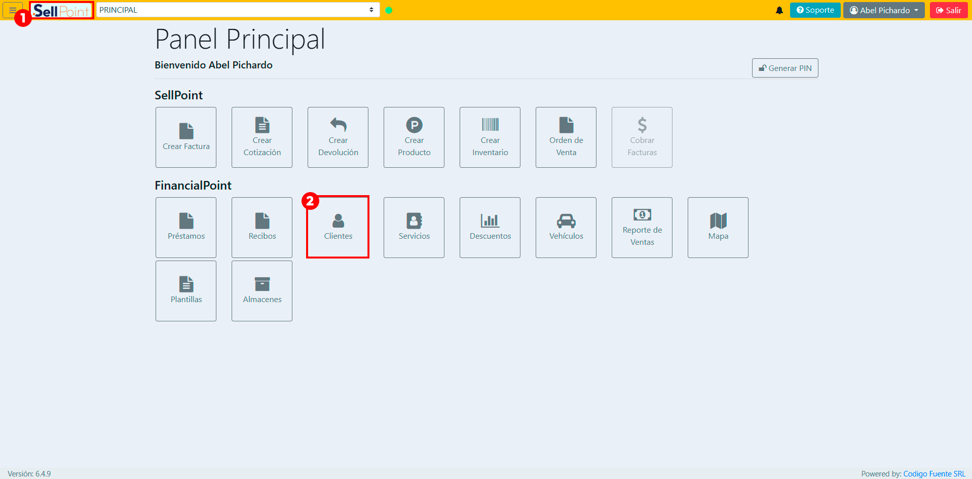 En el menú principal de SellPoint, en el apartado de FinancialPoint, está la opción de clientes.
