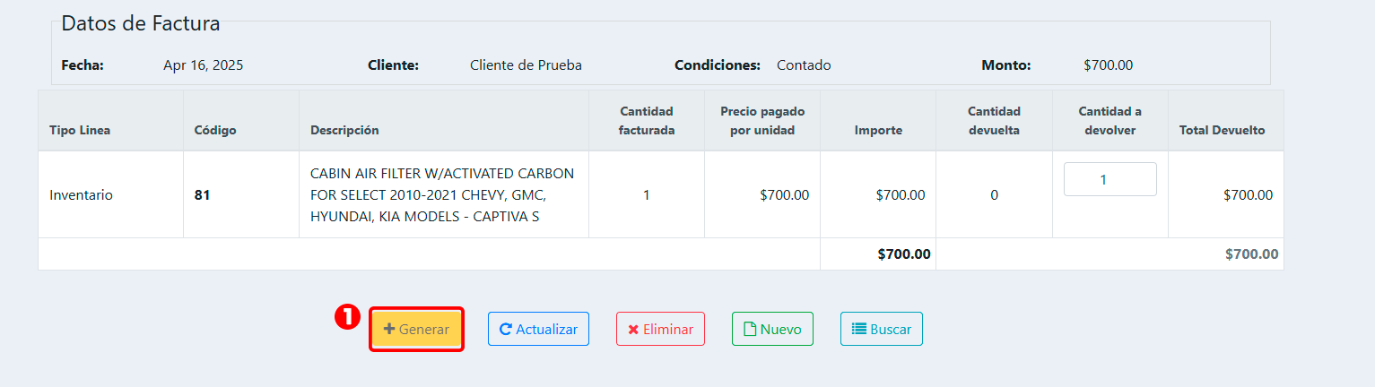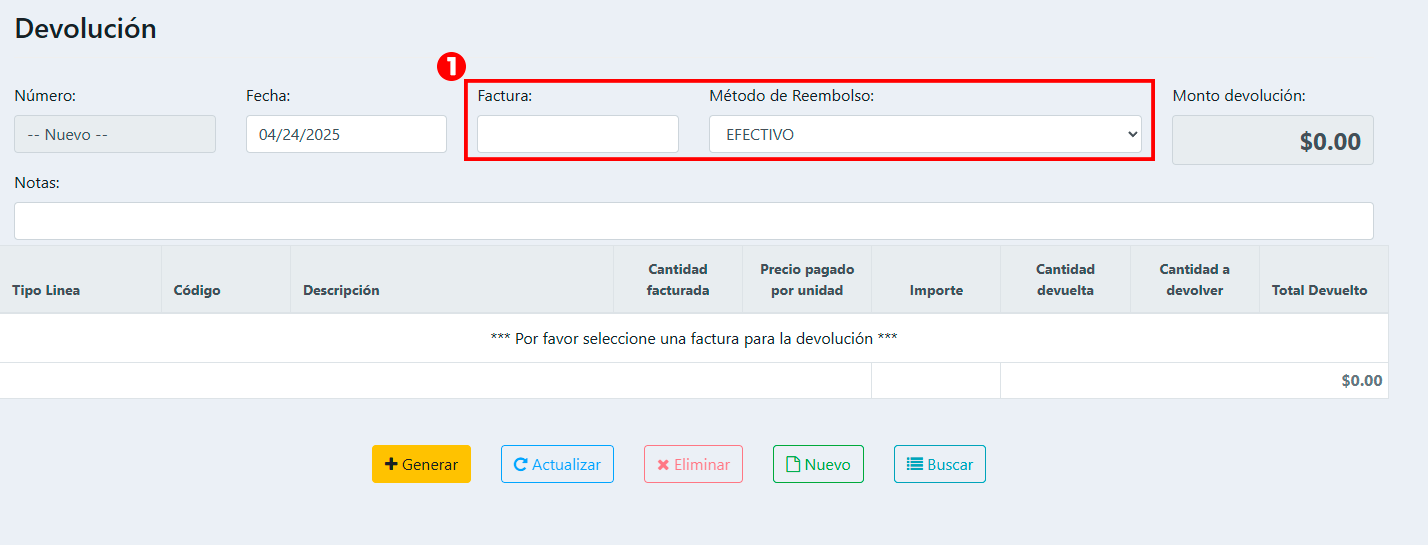 En el menú principal de SellPoint se encuentra la opción de crear devoluciones.
